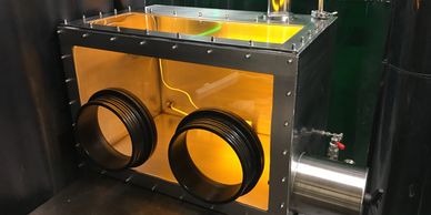 A request came in for a desktop glovebox. Welded together from 2mm stainless steel with a bubbler to act as a one way valve to prevent the ingress of atmosphere.
